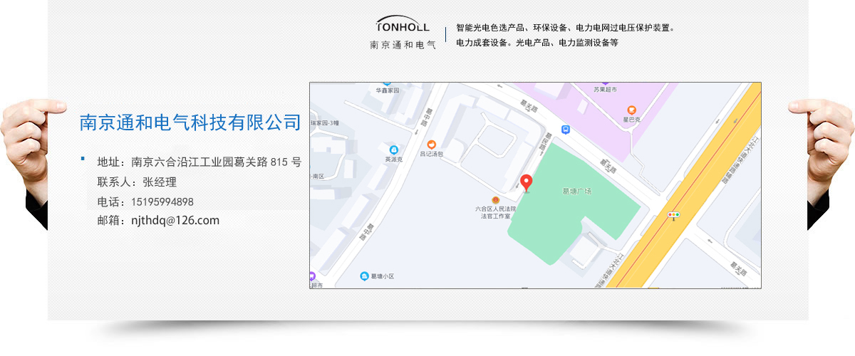 南京通和電氣科技有限公司是致力于研發(fā)、 生產(chǎn)防雷產(chǎn)品的科技型企業(yè)。公司集研發(fā)、生產(chǎn)、銷售、服務為一體,目前主要產(chǎn)品為:智能光電色選產(chǎn)品、環(huán)保設備、電力電網(wǎng)過電壓保護裝置。電力成套設備。光電產(chǎn)品、電力監(jiān)測設備等。公司秉承“誠信。創(chuàng)新、和諧。卓越”的經(jīng)營理念,研發(fā)創(chuàng)新的專業(yè)態(tài)度服務客戶,追求卓越,以其高水準的產(chǎn)品品質(zhì)和良好的企業(yè)信譽,在發(fā)展進程中得到了社會廣泛認可。